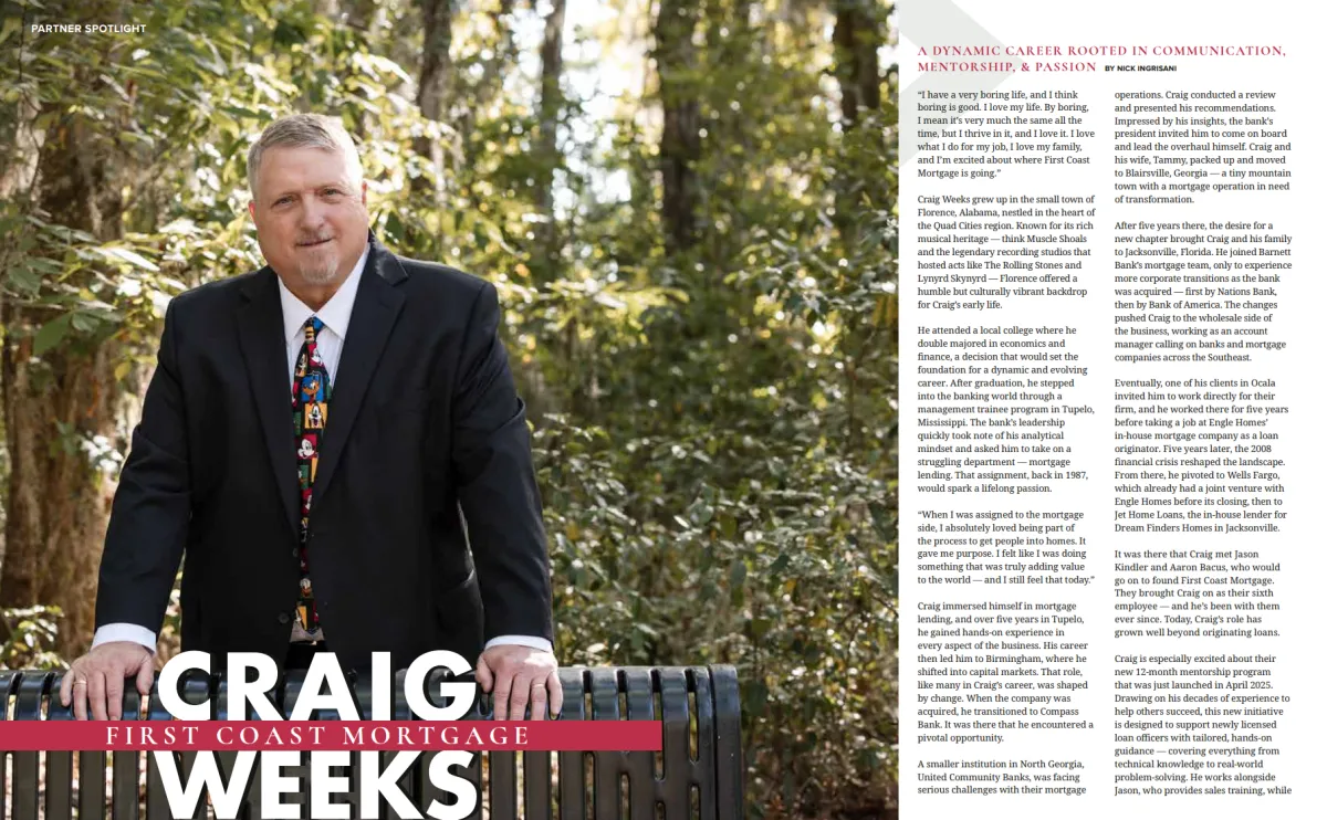 At First Coast, mentorship isn’t a few onboarding calls, it’s a full year of hands-on partnership. Every new Loan Officer works directly with Craig, our Director of Training & Development, who helps structure deals, review pipelines, and navigate complex scenarios in real time. From your first 90 days through your first full year, you have an experienced leader working alongside you to protect your production, sharpen your strategy, and help you close more loans with confidence. This is how we remove transition risk and accelerate growth.